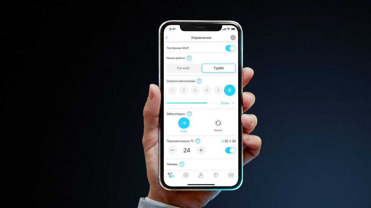 Управлять устройством можно со смартфона (в комплектации Plus и Magic). Организуйте работу прибора в соответствии с Вашими потребностями. Контролируйте параметры качества воздуха такие как влажность, концентрация СО2, температура воздуха и задавайте работу прибора в автоматическом режиме в соответсвии с Вашими потребностями (в комплектации Plus, Magic).