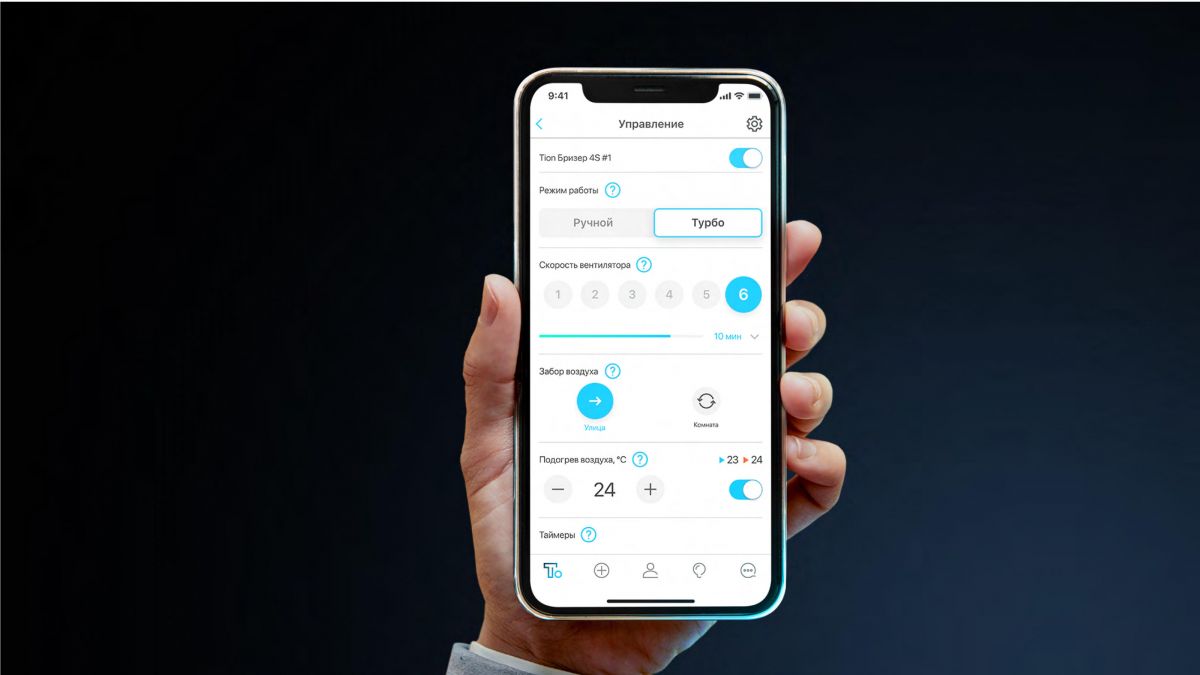 Управлять устройством можно со смартфона (в комплектации Plus и Magic). Организуйте работу прибора в соответствии с Вашими потребностями. Контролируйте параметры качества воздуха такие как влажность, концентрация СО2, температура воздуха и задавайте работу прибора в автоматическом режиме в соответсвии с Вашими потребностями (в комплектации Plus, Magic).