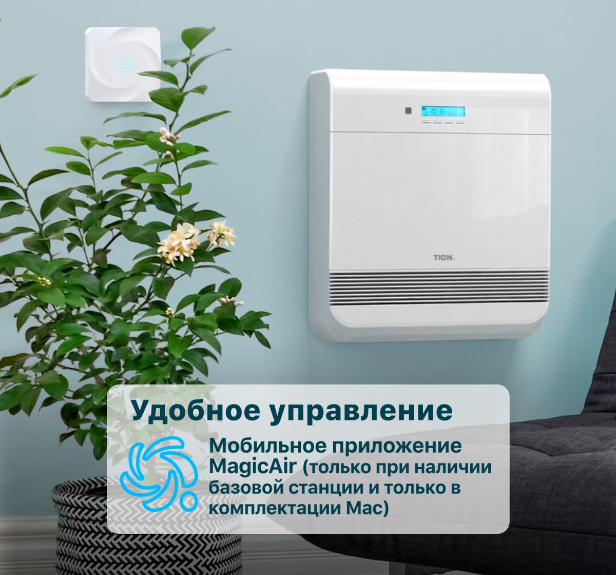 - Встроенный WiFi модуль обеспечивает совместимость с базовой станцией MagicAir и модулем CO2+, которые НЕ входят в стандартную комплектацию.