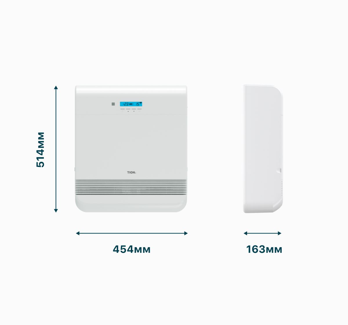 - Керамический нагреватель мощностью до 1,45 кВт - подогревает приточный воздух в зимний период, не сжигая при этом кислород. За счет климат-контроля система автоматически регулирует мощность нагрева.