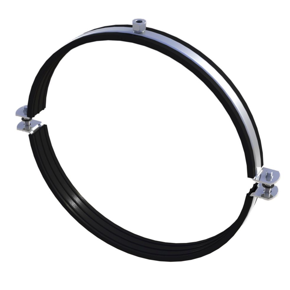 Вентиляционные металлические хомуты с резиновым профилем и гайкой М8 применяются для горизонтального крепления либо подвеса воздуховодов, пластиковых и металлических труб, кабелей, жгутов на резьбовые шпильки М8. Хомуты имеют специальные резиновые уплотнительные подкладки, которые уменьшают вибрацию, передаваемую на крепеж и частично снижают уровень шума. Благодаря оцинкованному покрытию толщиной 8-10 микрон хомуты устойчивы к абразивному износу, старению и солнечному излучению, воздействию сред с высоким содержанием паров спирта, кислот, влаги. Легко и надежно собираются с помощью винтов, входящих в стандартную комплектацию. Рекомендуемая нагрузка на один вентиляционный хомут - 20 кг, предельная нагрузка - 60 кг. За счет резинового уплотнителя хомуты частично компенсируют температурные расширения.