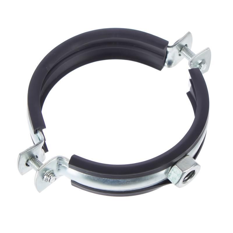 Вентиляционные металлические хомуты с резиновым профилем и гайкой М8 применяются для горизонтального крепления либо подвеса воздуховодов, пластиковых и металлических труб, кабелей, жгутов на резьбовые шпильки М8. Хомуты имеют специальные резиновые уплотнительные подкладки, которые уменьшают вибрацию, передаваемую на крепеж и частично снижают уровень шума. Благодаря оцинкованному покрытию толщиной 8-10 микрон хомуты устойчивы к абразивному износу, старению и солнечному излучению, воздействию сред с высоким содержанием паров спирта, кислот, влаги. Легко и надежно собираются с помощью винтов, входящих в стандартную комплектацию. Рекомендуемая нагрузка на один вентиляционный хомут - 20 кг, предельная нагрузка - 60 кг. За счет резинового уплотнителя хомуты частично компенсируют температурные расширения.