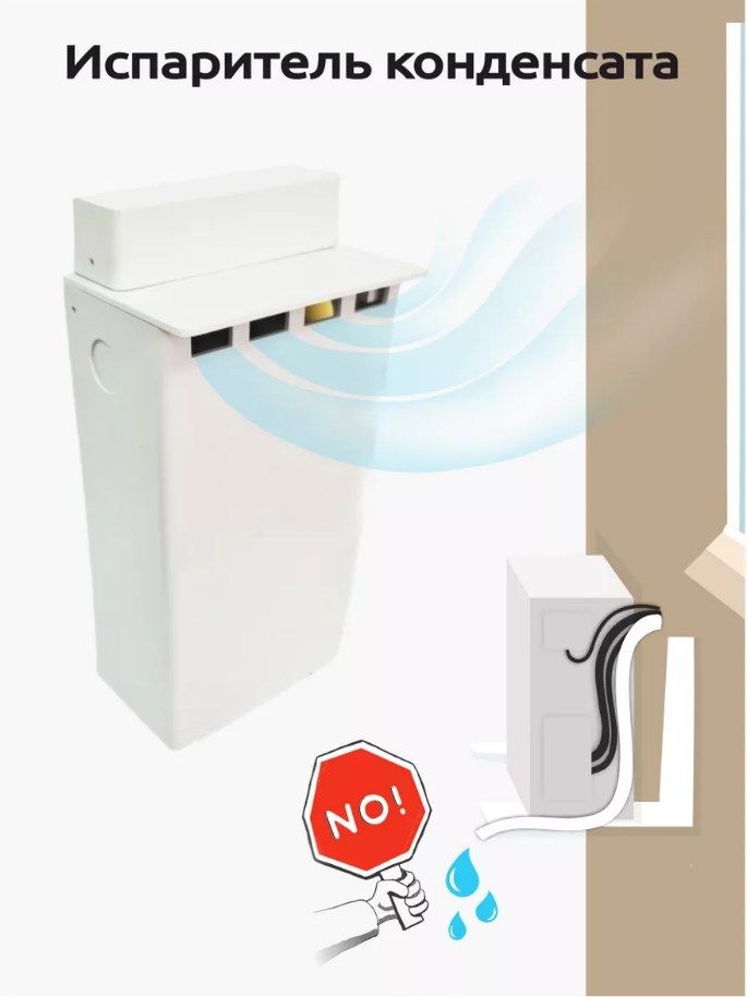 В современных домах, управляющие компании запрещают выводить капающий дренаж на улицу, испаритель полностью удовлетворяет данное требование УК и застройщика: вода не будет капать на прохожих, не будет разрушать фасад здания, соответственно Вы защитите себя от жалоб управляющей компании и недовольных соседей.
