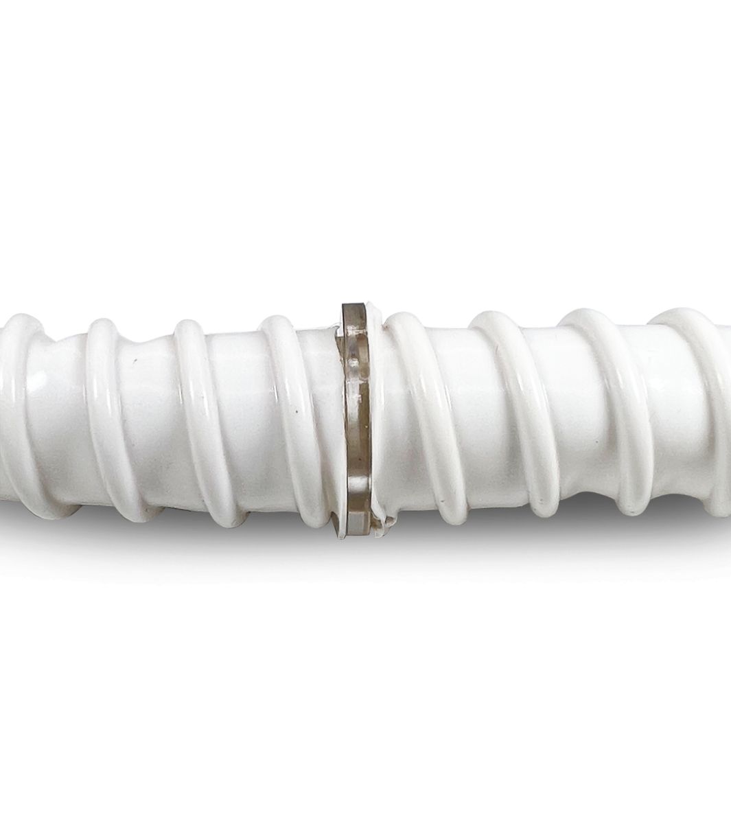 Дренажный шланг одевается на соединительный элемент плотно и через некоторое время прилипает к нему. Чтобы снять дренажный шланг с дренажного ниппеля, вам потребуется приложить значительные усилия. Несмотря на это, рекомендуем дополнительно использовать пластиковые стяжки для более надежного соединения, особенно когда речь идет об укладке дренажного шланга в штробу во внутрь стены.