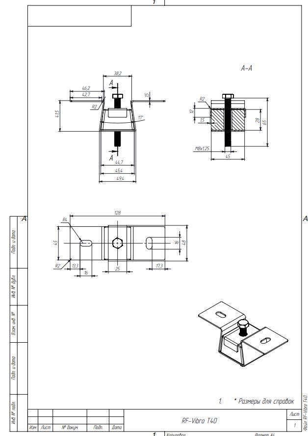 Комплектация RF-Vibro T 40 включает болт с резьбой М8 и длиной 80 мм, который при необходимости может быть заменен на шпильку с размером резьбы М8.